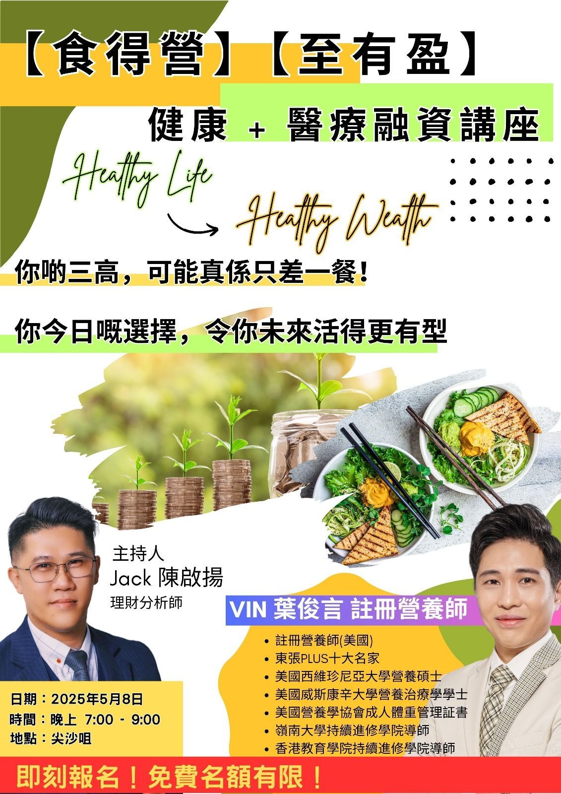 【食得啱】【至有盈】健康 + 醫療融資講座