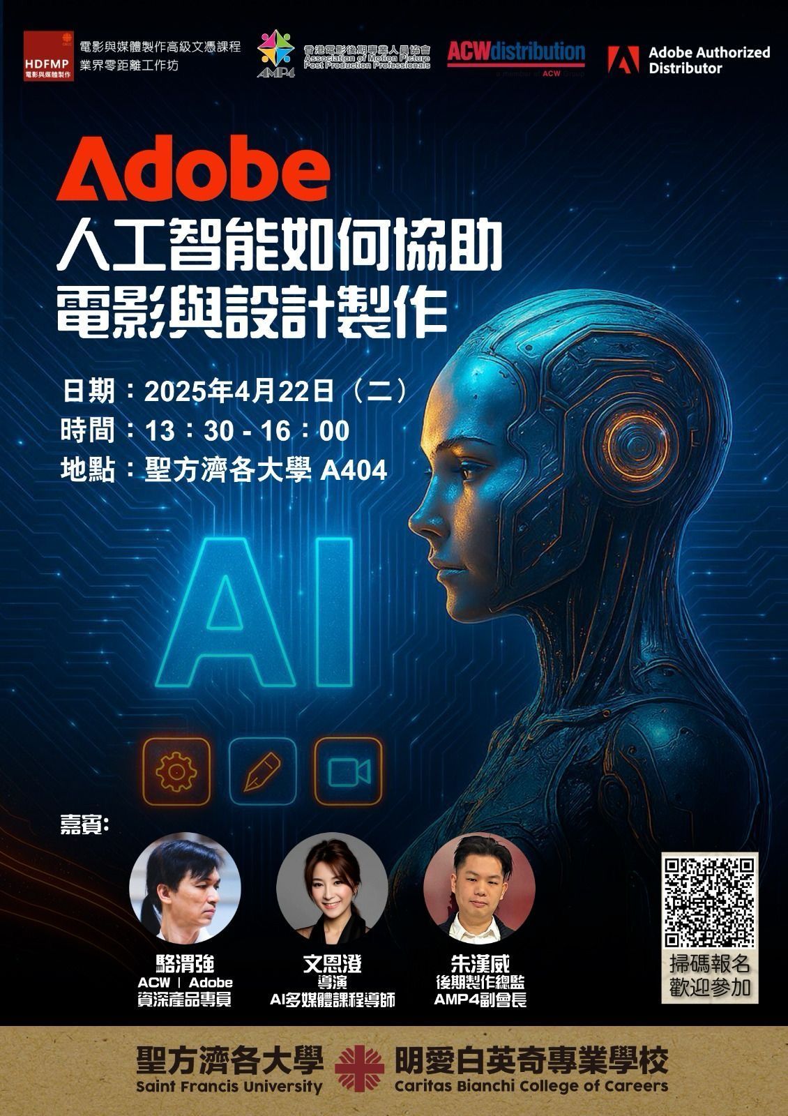 人工智能(AI)正重新塑造電影與設計產業,透過革新視覺特效、劇本創作、角色設計及虛擬場景製作,開啟創意合作新可能。是次聖芳濟大學主題活動將深入探討AI與創作人之間的協作關係,分享真實案例與最新應用工具,助你掌握AI帶來的挑戰與機遇,開拓創意疆界,與未來共舞。